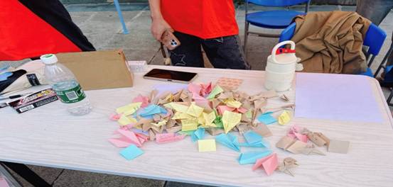 活动过程中,同学们纷纷在便利贴上写下自己对各类自然灾害的深刻认识,以及对遭受自然灾害区域人民的诚挚鼓励,而后将其折叠成千纸鹤寓意着美好的祝福与希望。